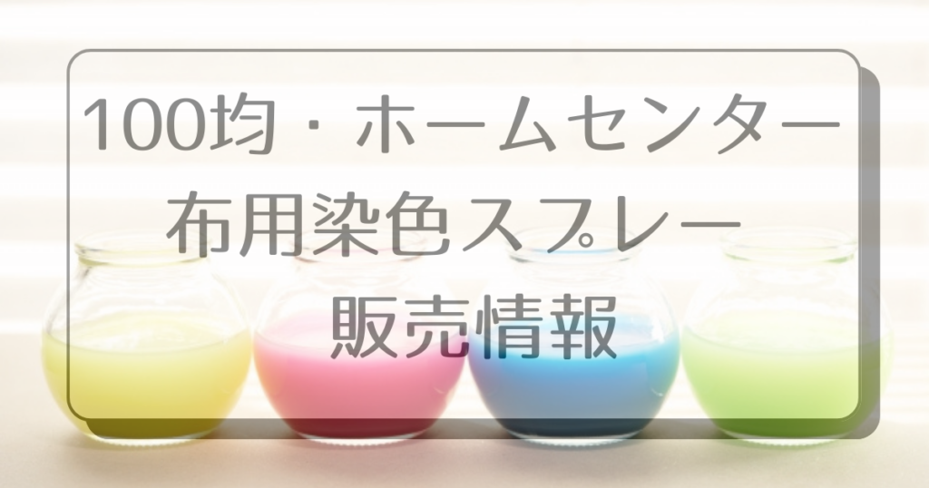 100均で布用の染色スプレーは見つかりませんでしたが、ホームセンターやバラエティショップ、オンライン通販での入手は可能です。