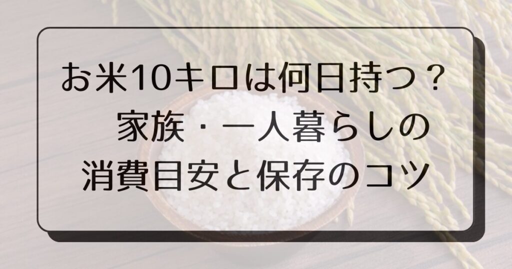 実は、お米10キロは約66合に相当し、茶碗にするとおよそ132杯分。1人暮らしなら約2か月、4人家族なら2〜3週間で食べ切る目安になります。