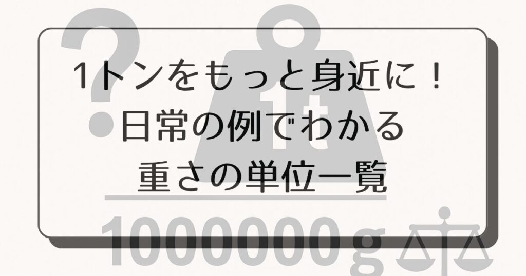 そこで今回は、1トンをグラムに直す方法や、身近な物に置き換えてイメージするコツなどを、やさしく丁寧にまとめました。数字が苦手な方でも大丈夫。