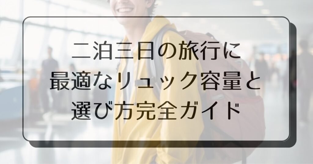 「二泊三日の旅行にはどんなリュックが最適?」そんな疑問を抱えて検索された方も多いのではないでしょうか。