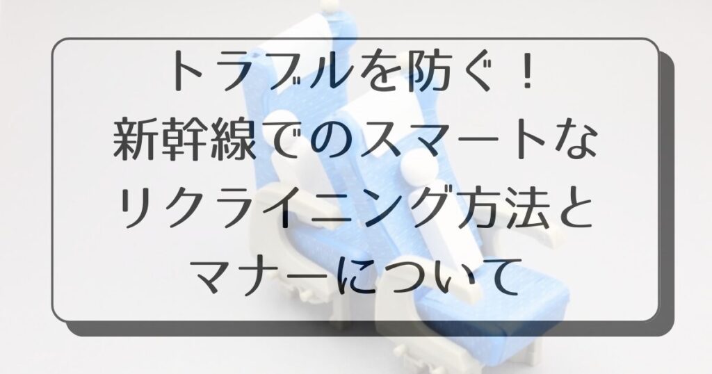 新幹線のリクライニングは、快適な移動をサポートする便利な機能ですが、使い方を誤ると周囲とのトラブルにつながることも。