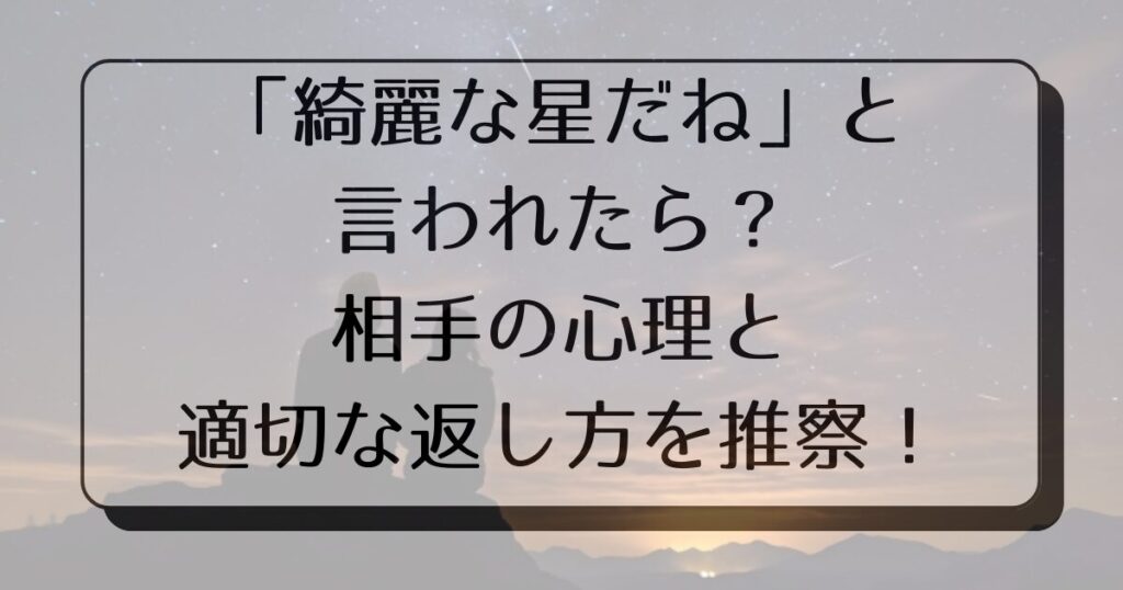 また、この言葉を受けたとき、どのように返すのが正解なのでしょうか?今回は、「綺麗な星だね」の意味を深堀し、もしあなたがそう言われた時の適切な返し方について詳しく解説していきます。