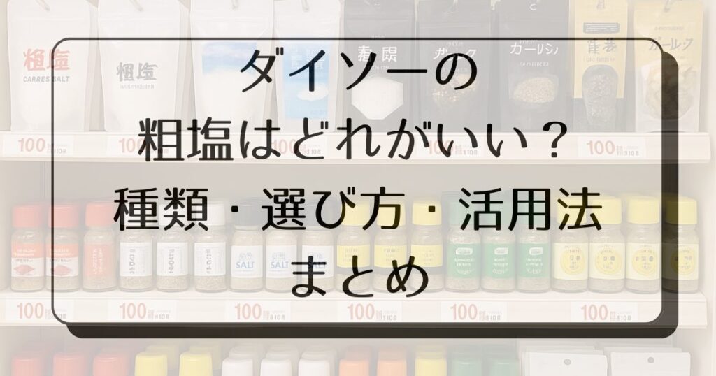 この記事では、ダイソーで買える粗塩の種類や特徴、見つけやすい売り場のコツ、さらには選び方や活用法まで詳しくご紹介。