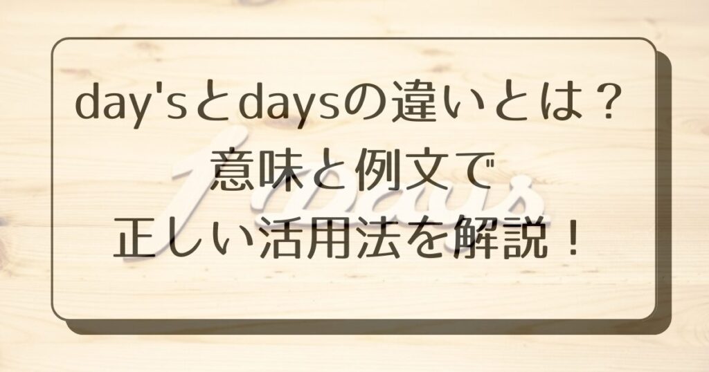 「day’s」と「days」の違いは、ほんの小さな文字の差に見えても、英語の意味を正確に伝えるうえでとても大切なポイントです。