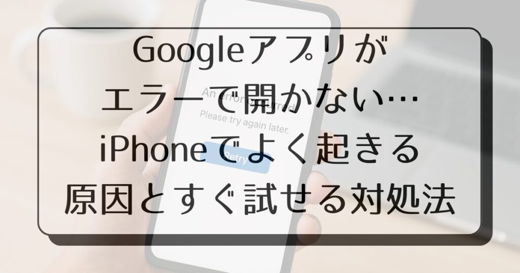 スマホで調べものをしようとした瞬間に、Googleアプリが突然「エラーが発生しました。しばらくしてからもう一度お試しください。」と表示されると、とても驚きますよね。再試行ボタンを押しても動かず、アプリも固まったままだと、何をどうすればいいのか戸惑ってしまう方も多いと思います。