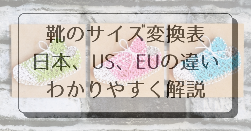 次に、日本、アメリカ(US)、そしてヨーロッパ(EU)の靴サイズを変換する方法についてご説明します。