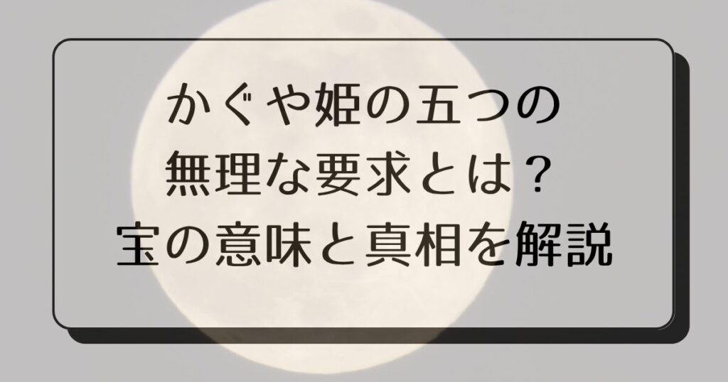 「かぐや姫が出した五つの“無理難題”って、結局なんだったの?」——そんな疑問を抱いたことはありませんか?
