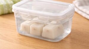 保存する際は、こんにゃく餅が乾かないように、水に浸した状態で密閉容器に入れるのがポイントです。