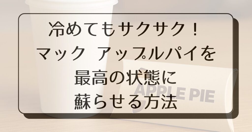 そこで今回は、「マック アップルパイ 温め直し」に焦点を当て、冷めたアップルパイを美味しくよみがえらせる再加熱テクニックを徹底ガイド!