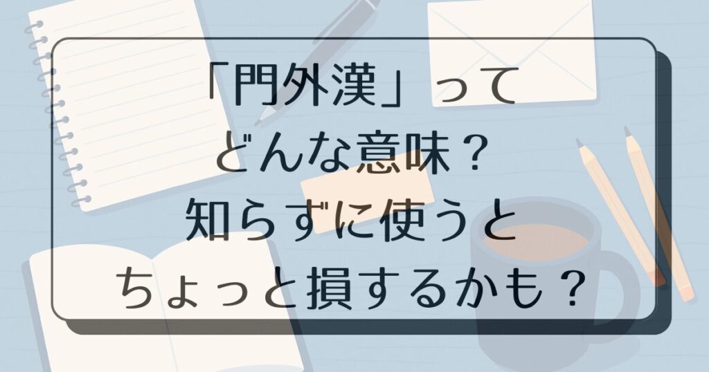 この記事では、門外漢の読み方や意味はもちろん、語源や類義語、会話やビジネスシーンでの使い方、さらには性別に配慮した言い換えまで、やさしく解説していきます。