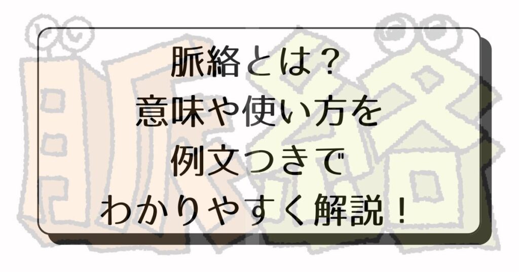 「脈絡(みゃくらく)」とは、物事のつながりや筋道のことを指します。