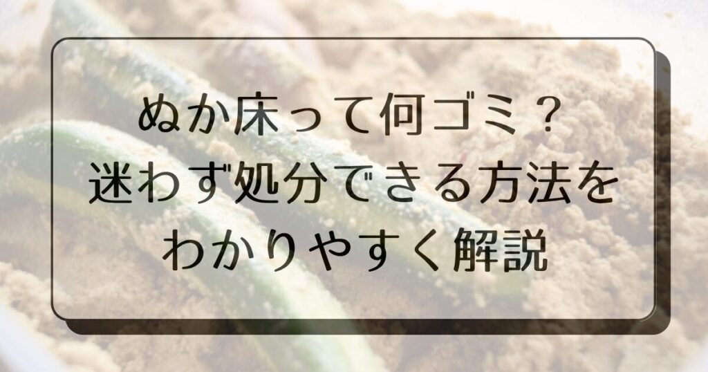 ぬか床のごみ分類は、多くの自治体で「燃えるゴミ」または「生ゴミ」として扱われています。