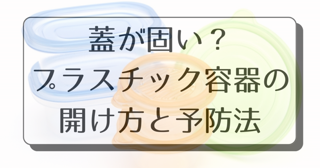 プラスチック容器は、毎日の生活で大いに活躍し、食品を保存する際にはなくてはならない便利なアイテムです。ただ、時には蓋が開かなくなるトラブルが生じて時間を無駄にし、ストレスの源になることもありますね。