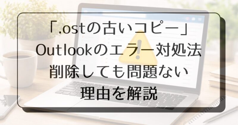Outlookを開いたとき、突然「.ostの古いコピーが使用されています。Outlookを終了し、ファイルを削除して再起動してください」と出ると、びっくりしますよね。