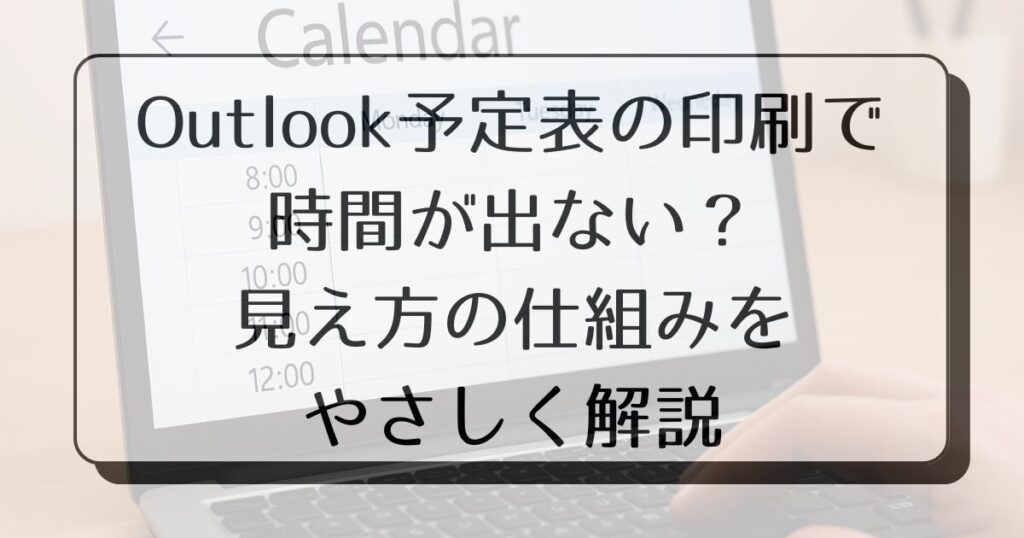 Outlook予定表で時刻が印刷されないときは、設定が壊れたわけではなく、表示形式や印刷スタイルの影響で省略されているだけ、というケースが多いです。