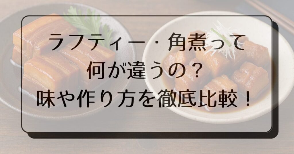 本記事では、そんなラフティーと角煮の違いを5つの視点からやさしく解説します。材料の選び方や調理のポイント、味付けの特徴、食感の違いなど、初心者の方でもわかりやすいよう丁寧にまとめました。