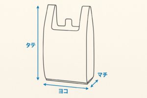 家にあるレジ袋を軽く測るだけでも、近いサイズが分かります。タテ・ヨコ・マチの組み合わせ次第で入れられる物の形が大きく変わるため、よく入れる物の形状に合わせて寸法を確認しておくと安心です。