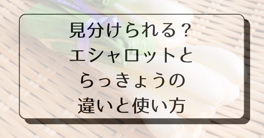 一方、エシャレットは日本のらっきょうで、生食に向いたあっさりとした味わいが魅力です。実際には全く異なる食材ですが、名称が似ていることから混同されやすく、スーパーでも表記が分かりにくいことがあります。