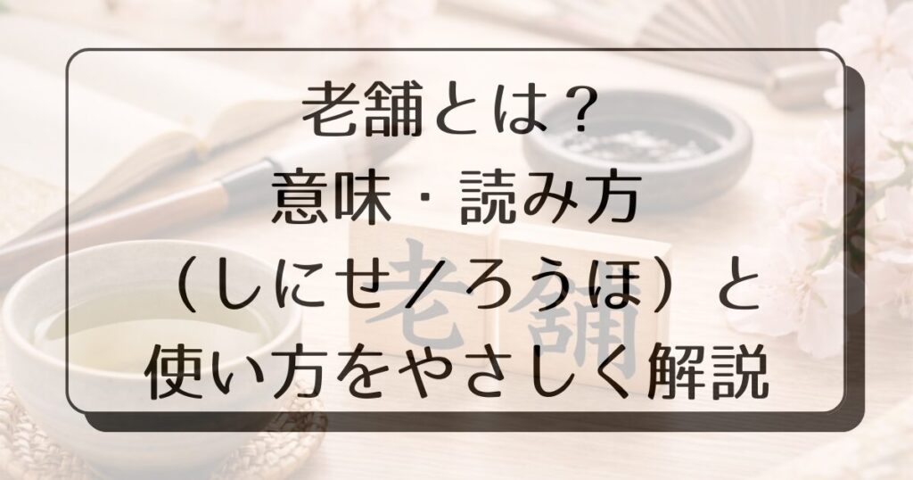この記事では、老舗の正しい読み方を最初に整理したうえで、意味・年数の目安・使い方・言い換え表現までをやさしく解説します。専門的な知識は使わず、初めて調べる方でも読み進めやすい内容にまとめました。