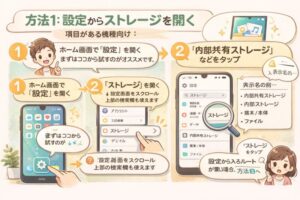 「内部ストレージどこ?」は、実は“どこに保存される?”“どこから開く?”が混ざりやすい質問ですよね。