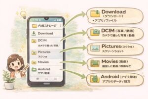 そのうえで、目的別にDownload(ダウンロード)DCIM(写真・動画)など、まず見るべき保存場所を整理して、見つからないときのチェック順も省略せずにまとめます。