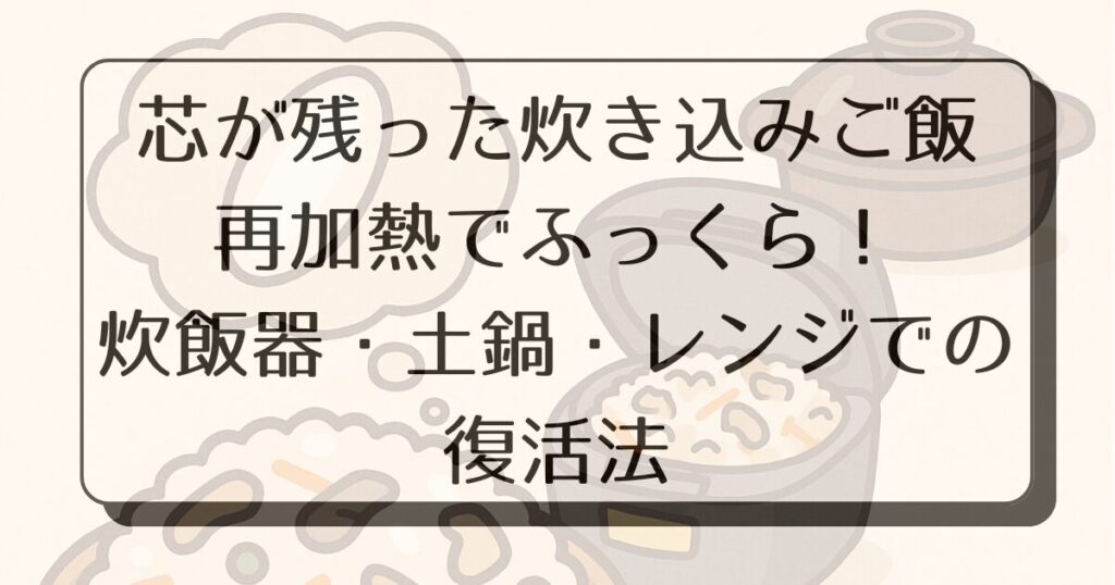 芯が残ってしまった炊き込みご飯も、ちょっとした工夫や道具の特性を活かせば、驚くほど美味しく復活できます。