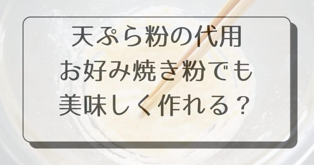 天ぷらを作ろうと思っていたのに天ぷら粉がない事に気付いても大丈夫です!今回は、お手持ちのお好み焼き粉と水を使って、簡単に天ぷら粉を代用する方法をご紹介します。実は、お好み焼き粉は使い道が限られているため、家庭に余っていることも多いのですが、この方法で新しい使い道を見つけることができますよ。