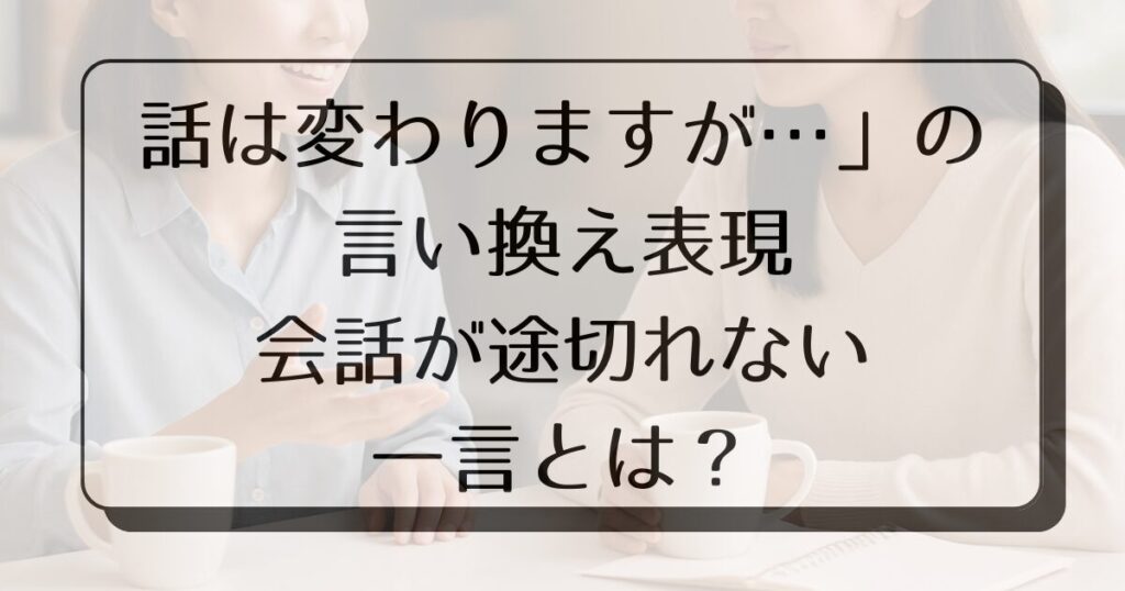 話題を自然に切り替えるには、唐突に別の話を始めるのではなく、流れに沿ったフレーズを活用することがポイントです。