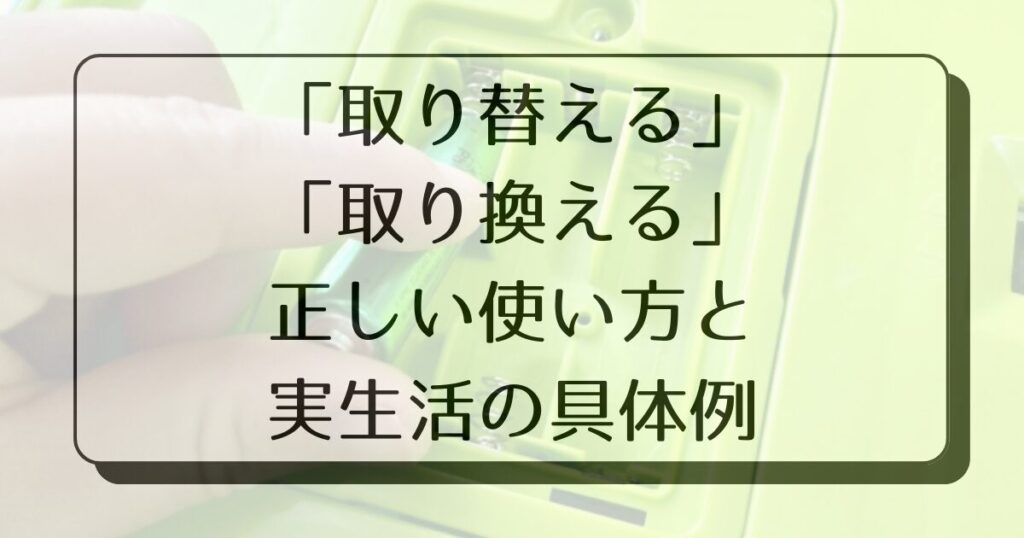 「赤ちゃんのオムツを取り替える」「ソファのクッションを取り換える」など、用途に応じた言い回しを使いこなすことで、より自然で丁寧な表現になります。