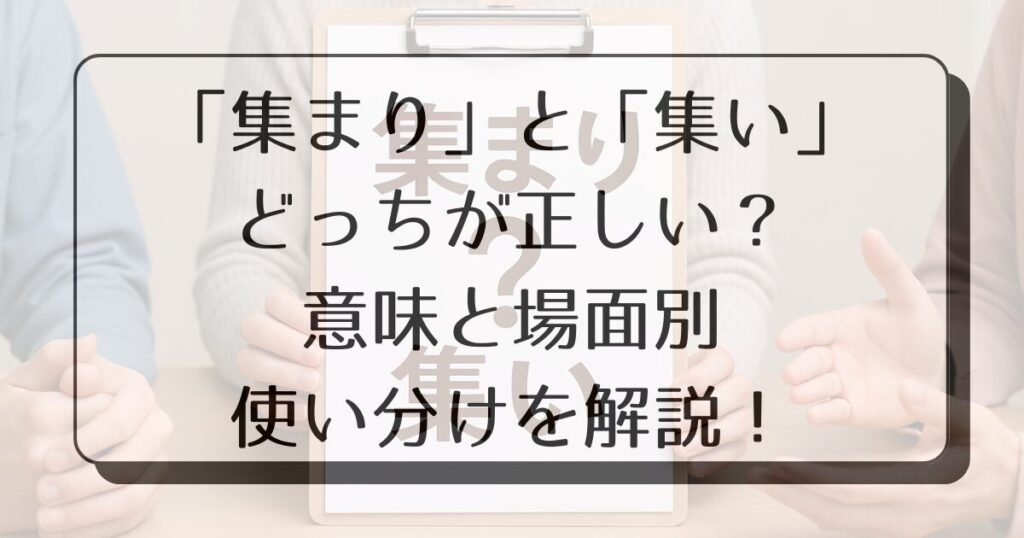 この記事では、「集い」と「集まり」の意味の違いや印象の違い、使われやすい場面をやさしく解説。