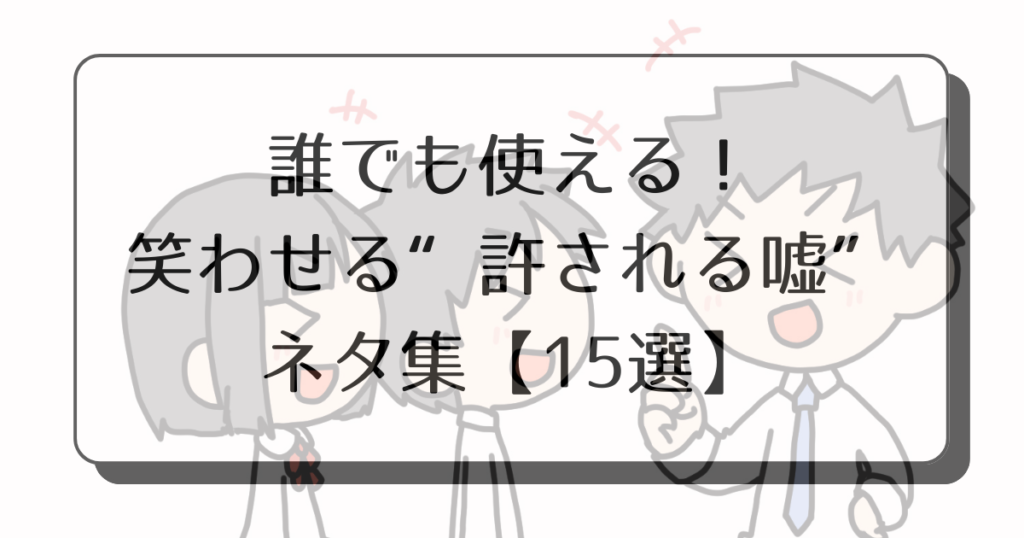 この記事では、誰でもすぐに試せる嘘ネタから、場面に合わせた使い分けのコツ、マナーまでをプロ目線で紹介します。読めばあなたも、相手を笑わせる“名演出家”になれるかも!?