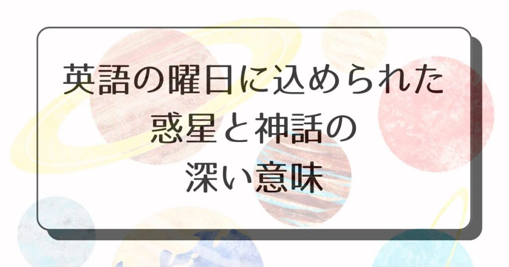 英語の曜日名は、古代の天文学や神話に深く根ざしており、それぞれの名前が天体や神々と結びついています。ここでは、その由来や歴史的背景を分かりやすく解説します。