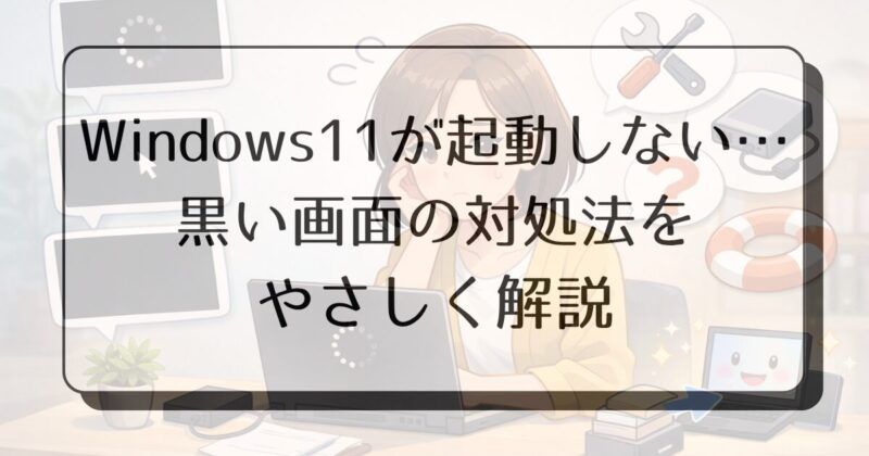 Windows11のパソコンが突然起動しなくなって、黒い画面のまま止まるととても不安になりますよね。